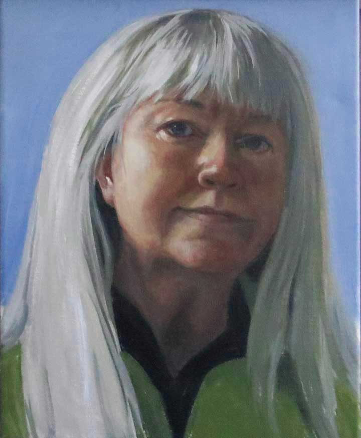 “Self-Portrait” — oil on canvas 14×11″ by Margie Guyot