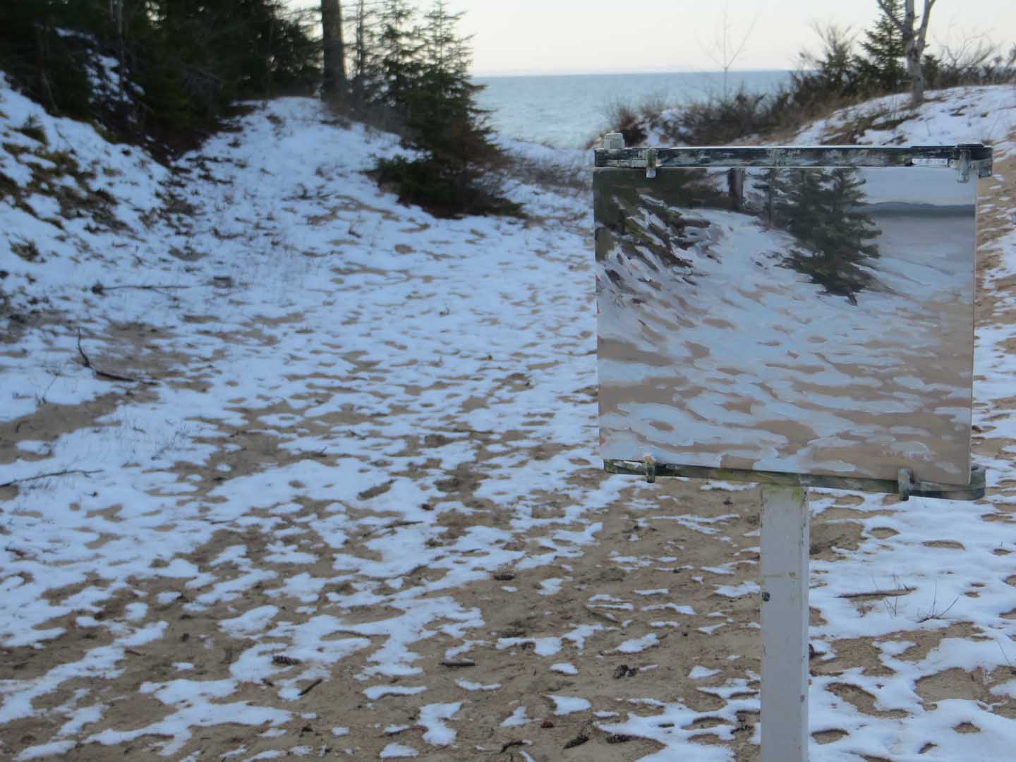 That’s a glimpse of Grand Traverse Bay and the Leelanaw Peninsula in the distance. Not shown: a rotting seagull in the snow behind me….