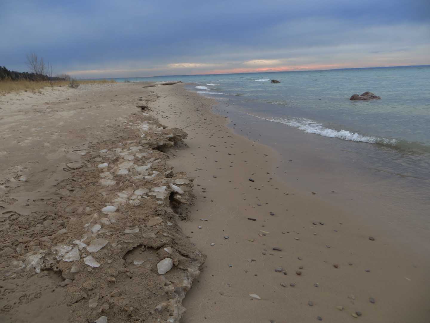 Instead of heading back to the trail, I moseyed over the dunes and down to the shoreline. Nobody was there (as usual!) and I had the whole place to myself. As you can see, most of the ice and snow have melted.