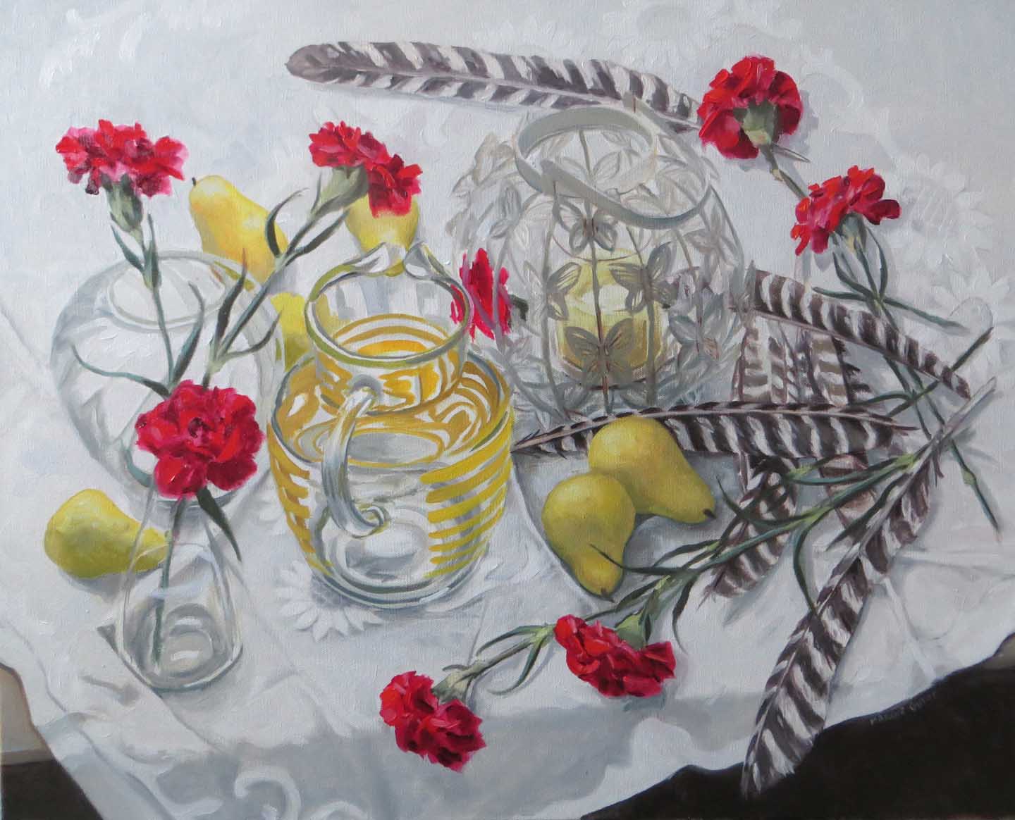 Notice the butterfly candle holder? Found it one day last summer while prowling the junk shops. I find it fascinating to paint! I’ll have to use it again in another painting — and soon! That reminds me — I have a collection of butterfly scarves. Ahhhh…..!