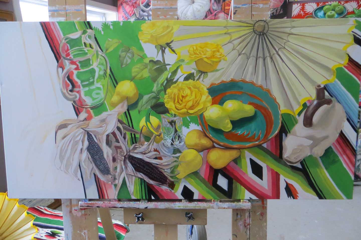 Painting corn husks while