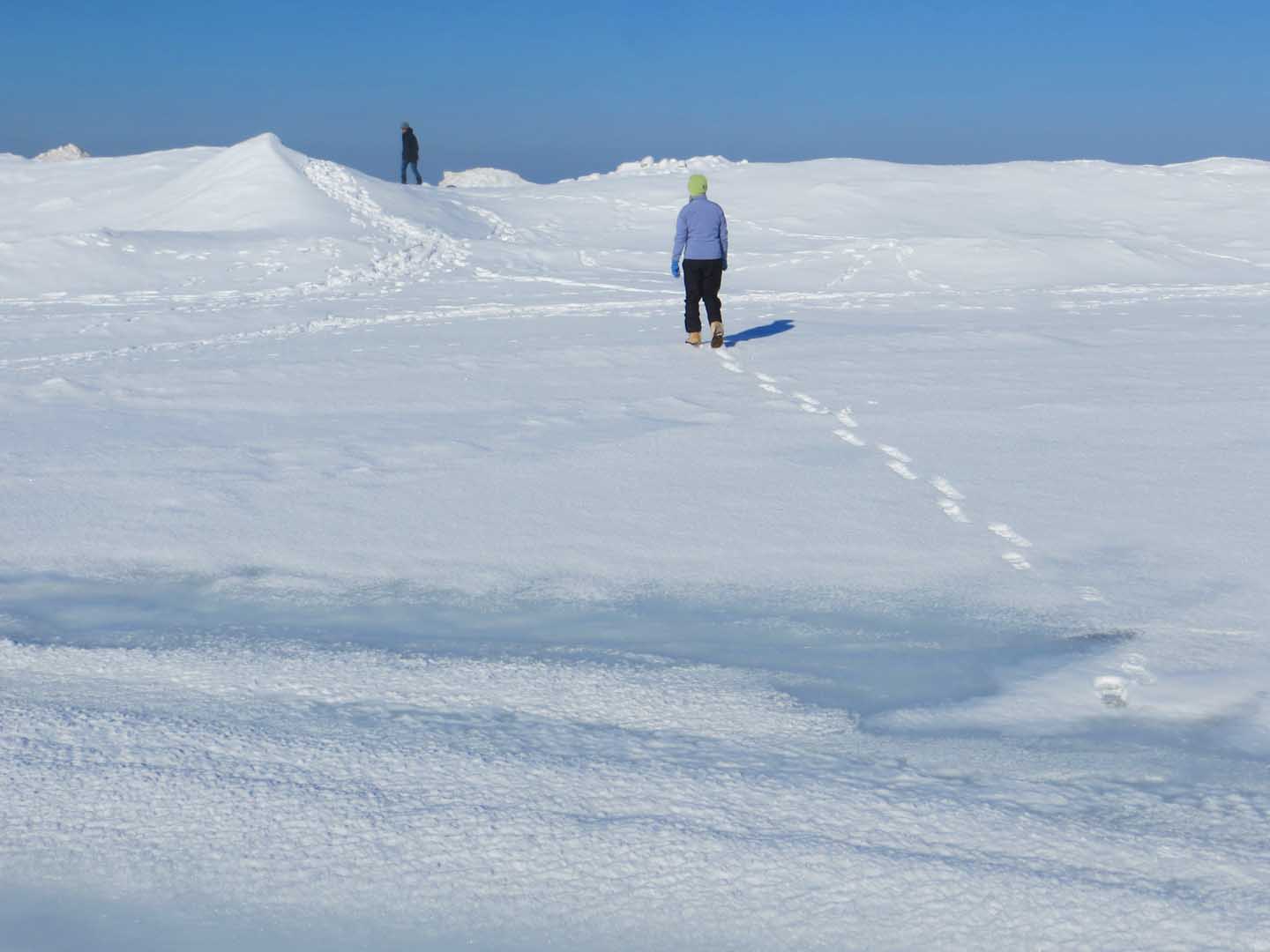 A few other hardy souls were out there, exploring. By the end of winter there are always spectacular formations, thrown up by the relentless winds.