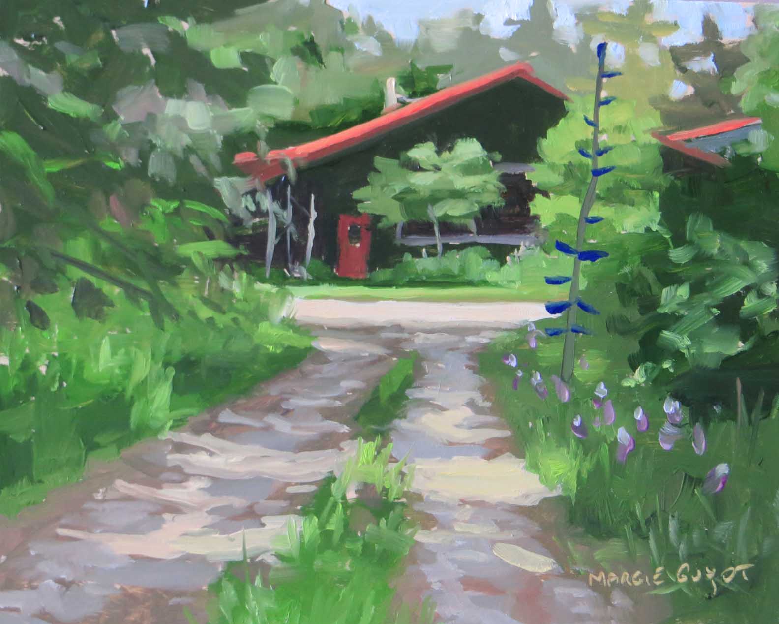 Then it was time to check the mail. I was pretty tired out by then but when I saw this wonderful, shady view of my studio, I perked up. Nothing like sudden inspiration!