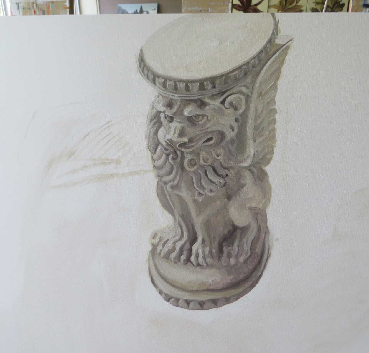 I actually tried starting this yesterday. Spent an hour drawing it in, then realized I’d chosen the wrong size canvas. Wiped the whole thing off, got a slightly larger (and squarer) canvas and started drawing it in this afternoon. Had several total wipe-outs until I could get it just the right size, right spot and angle. Decided I’d better quit while I was ahead. Tomorrow I’m (supposedly) going plein air painting at a peony farm. I DO have things planned for this, though. There is a method to my madness.