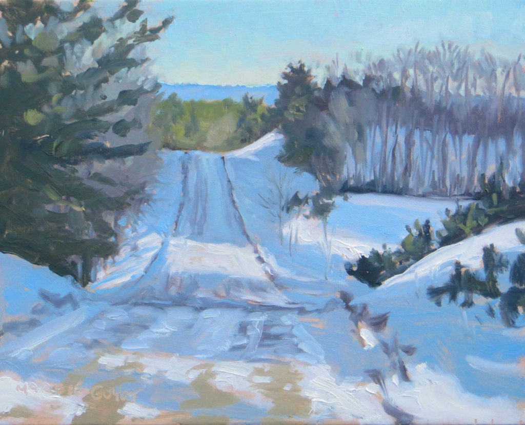After that I called my friend and drove up to meet her — rather than sit and wait. I’m not a “sit and wait” type person. On the drive home I stopped about a block from my house and painted this view of Scott Road.
