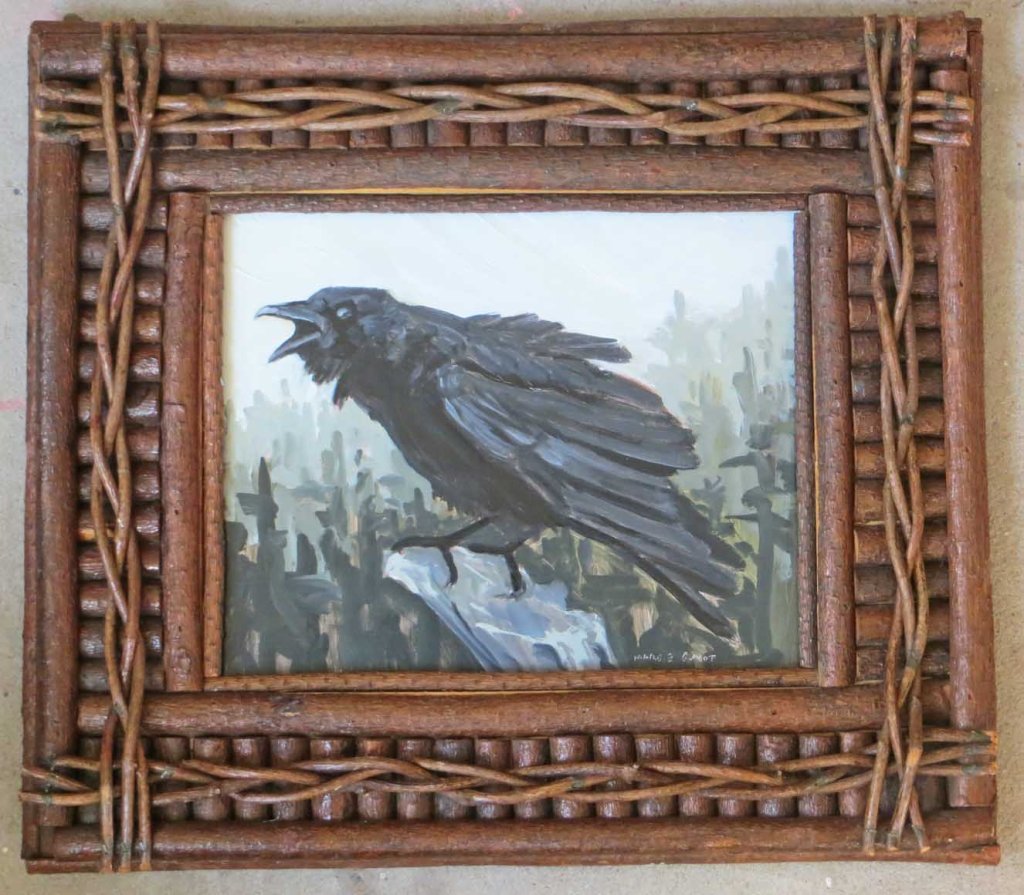 I love crows! When they fly overhead I look up and yell, “Hi, Crow!”. Sometimes they circle around. Probably wondering who that crazy human is down there. When I looked at this frame I just knew it would be perfect for a crow.