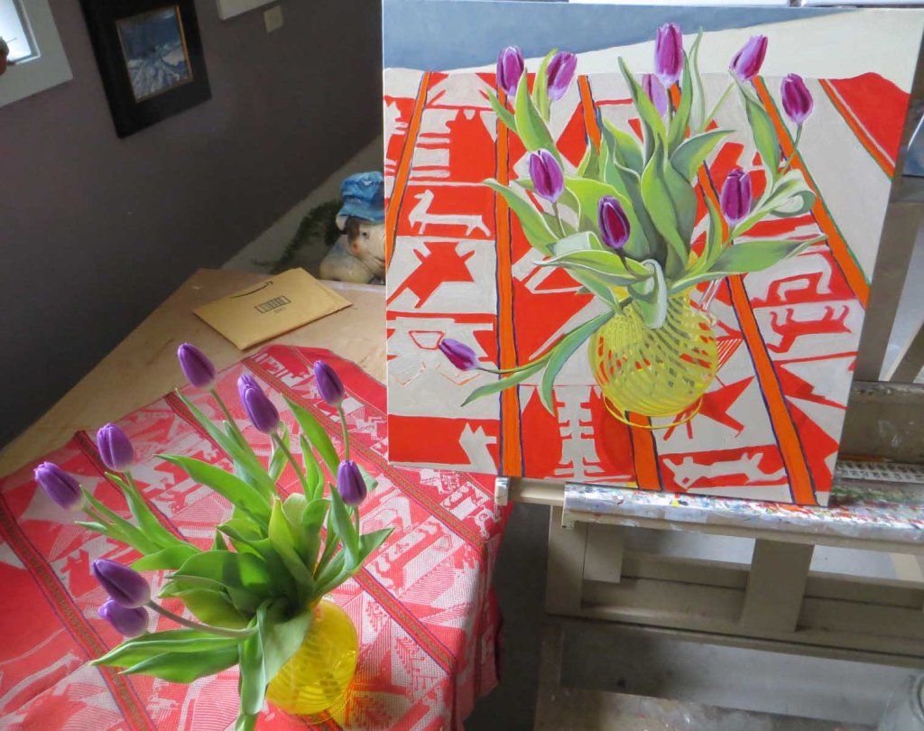 Day 3 on this. I darkened the fabric a bit and tentatively started figuring out what to do with the background. Had to take a break and go out and work on my blackberry patch fencing. Today it’ll be laying out 1000 feet of hoses while mulling over the dilemma of the background. Stay tuned!