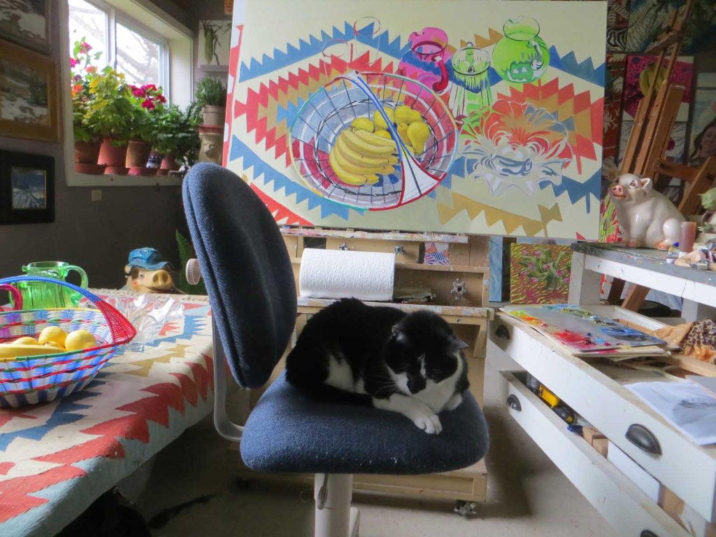 Day 3: Cat-Assist 0 May 15, 2020 Written by margiethepainter Here’s my studio assistant, Picasso, giving moral support as I paint on Day 3. Share this: Click to share on X (Opens in new window) X Click to share on Facebook (Opens in new window) Facebook Like Loading... Related