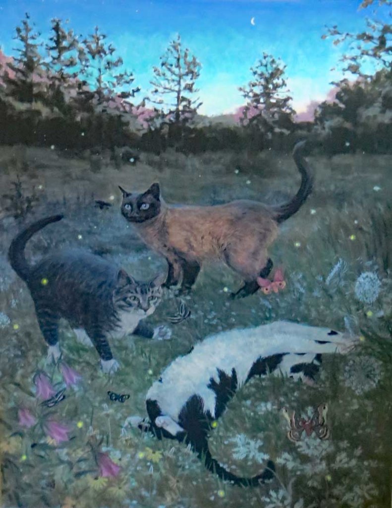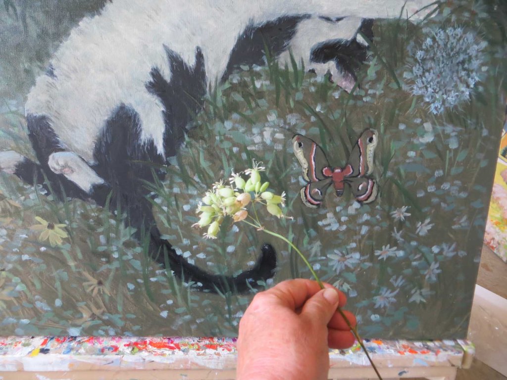 I guess this is done, more or less! Today I continued “frosting the cake”: darkening things, adding bugs, moths, lighting bugs and flowers.