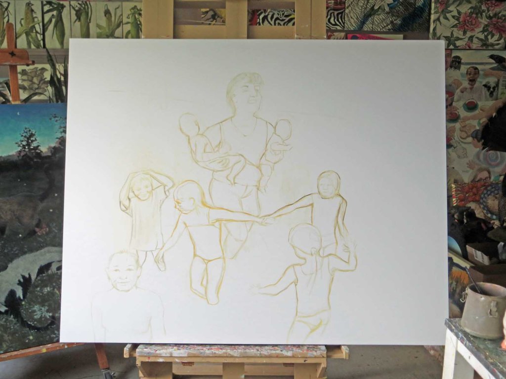 As soon as I woke up this morning I knew what I wanted to paint: a mud frolick! By some miracle, I just happened to have some images I’d taken years ago when I lived downstate. One of the towns held a “mud festival”. How could I miss that? Hundreds of people went. It was spectacular! I’d have enjoyed a good roll in the mud, but I didn’t want to risk ruining my camera. Instead, I shot photos.