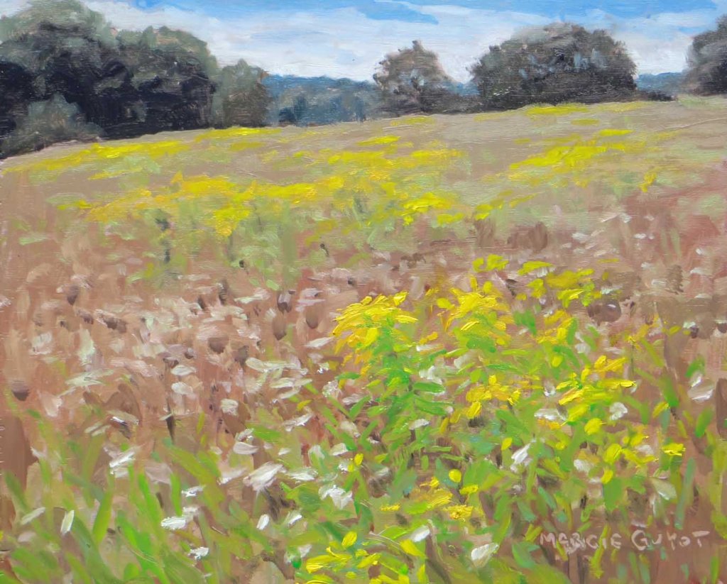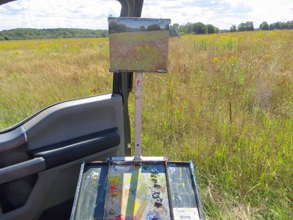 We’ve had the most gorgeous weather of the summer this past week! I saw this beautiful field of goldenrod along Essex Road, just east of US 31. Had to rush straight home, unload two bales of straw, two 40-lb. bags of peat, a winterberry shrub and heave my painting gear into the truck and head back over there. Fortunately, the road shoulder was wide enough for me to park and stand next to the truck. There’s nothing quite as comforting as having a big, old truck in between you and the traffic whizzing by at 55+ mph!