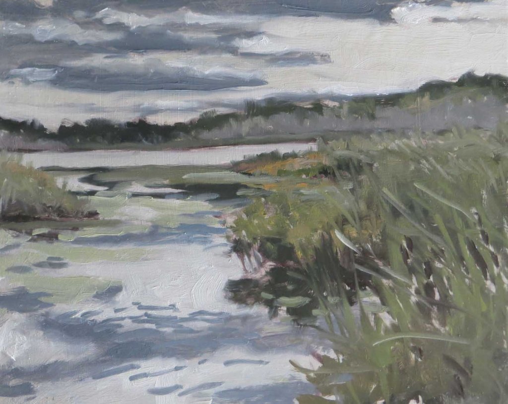 I’d meant to spend all day working on the portraits, but found myself continually looking out the window at the sky. The smoke from the California wildfires had turned our blue sky a pale gray. And the clouds were almost wicked-looking. Finally I decided to stop fighting it — and packed up my plein air gear and took off to go painting.