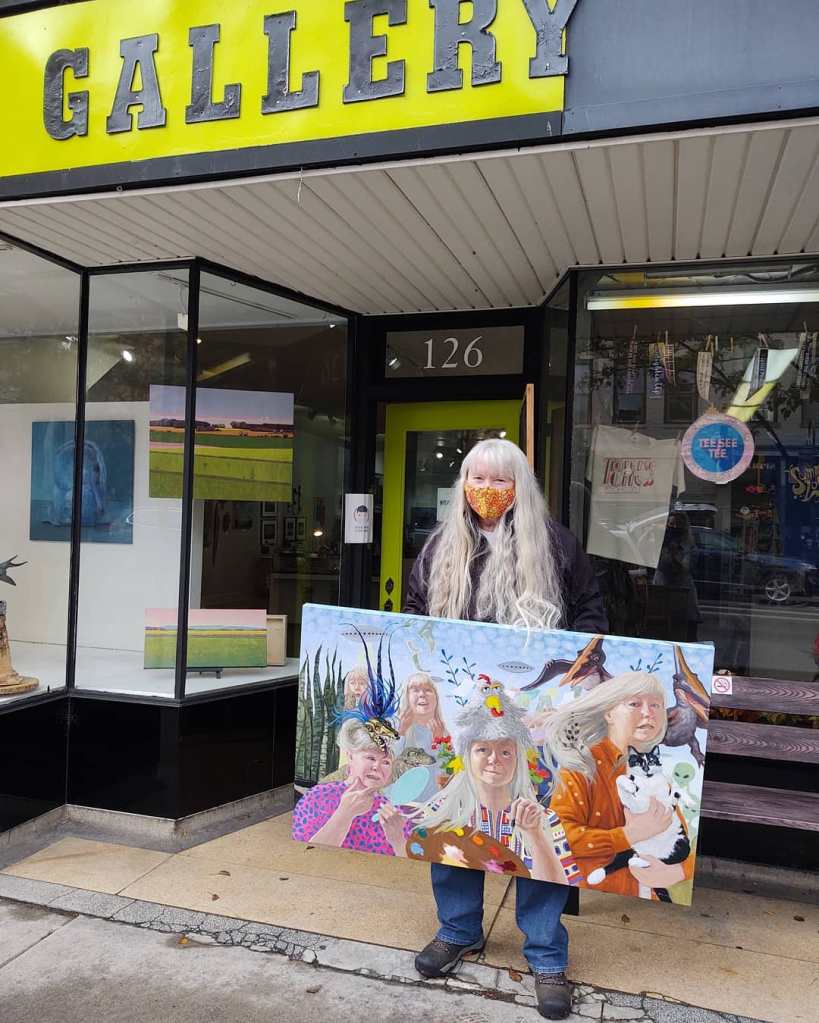 Schlepping — the term we artists use for transporting artwork to & from galleries. Yesterday I schlepped this piece to Higher Art Gallery in Traverse City for a show opening called “Citizens Coping– Artists respond to 4 years of an administration”. Opens October 9th. Social-distancing observed. https://www.higherartgallery.com/ticket-purchase