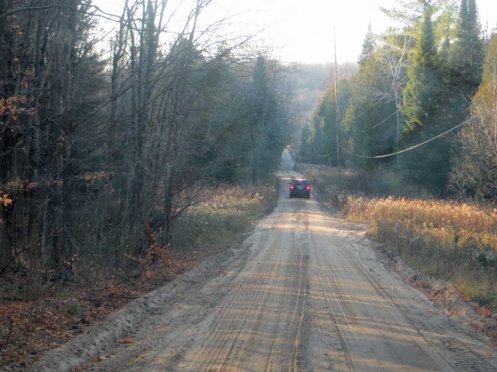 The “road” was quite primitive: very bumpy and muddy, with fallen trees to avoid. Definitely not a road for your fancy little sports car! But the land here is quite beautiful, with numerous creeks, steep hills, forests of maple, beech and pine and hemlock. It reminded me of Christopher Knight, called “the last American hermit”, who’d lived as a hermit in Maine for 27 years. He’d have loved this area.