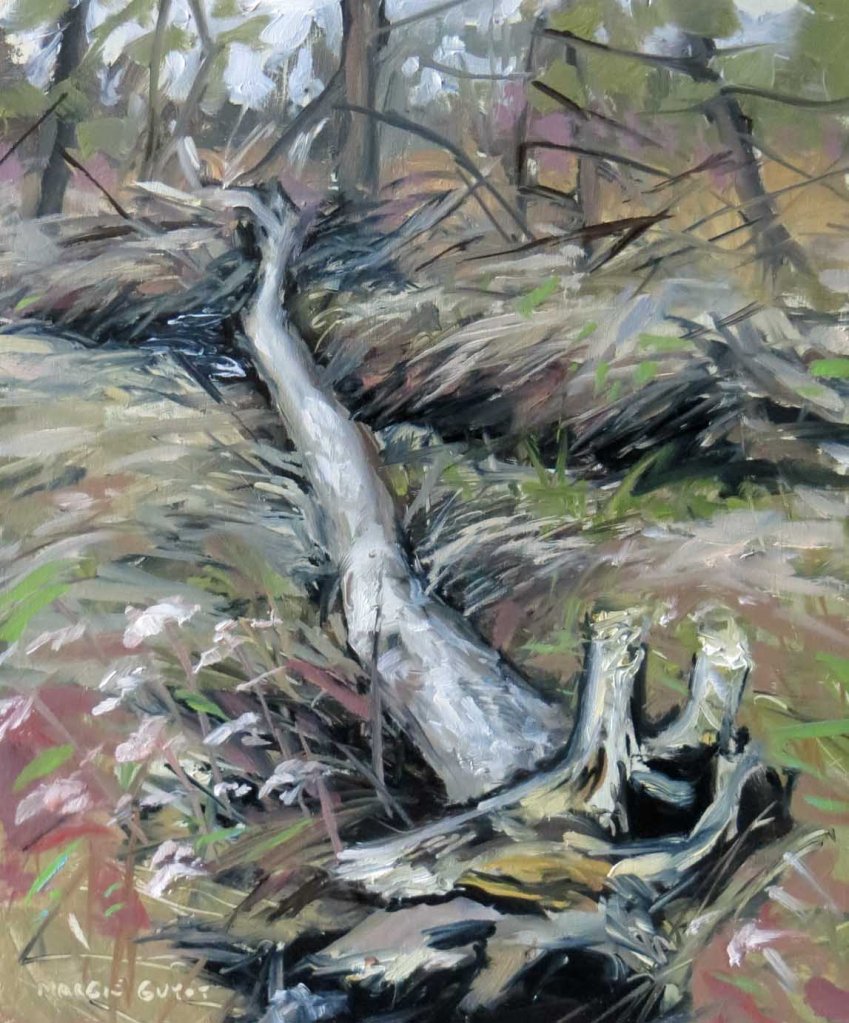 “Windfall” — plein air field study in oil on birch panel 10 x 8″ by Margie Guyot