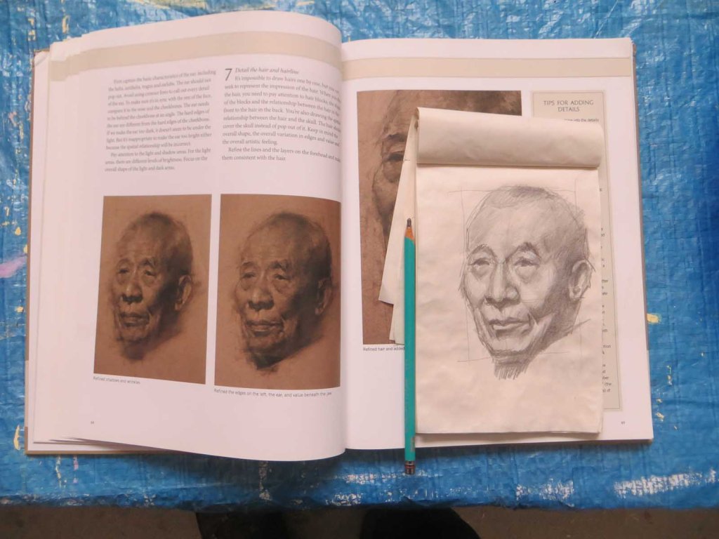 My friend Cal suggested a wonderful book, “Lessons in Masterful Portrait Drawing” by Mau-Kun Yim and Iris Yim. As a music major, we didn’t study portrait drawing very much, so today I thought it would be a good idea to see if I could learn anything from this book. Had to hunt for my old sketchbook (which I couldn’t find). Yes, yes — the lower lip and chin are not quite right, but the eraser was from about 1985 and wouldn’t erase. Excuses, excuses.