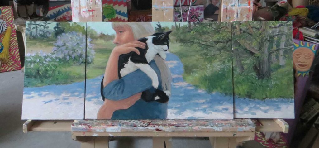 I went in to Traverse City this morning to see the show at the Dennos Museum, then came home and pecked away on this for a couple hours. Gave the flesh tones a bit of a glaze. I’m new to portraiture and flesh tones are a challenge. Still pondering my right hand. Hmmmm…. Nearly done!
