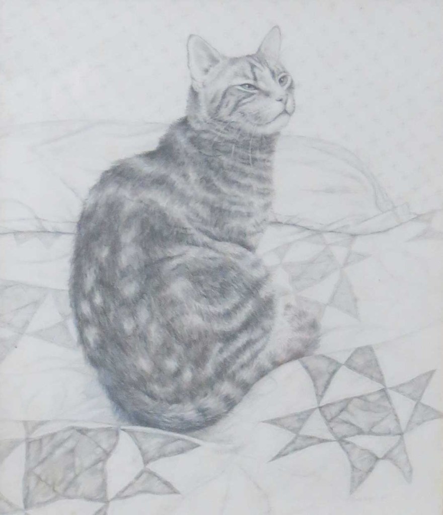 It’s amazing the stuff you find when you clean house! This is a drawing I did of one of my cats back around 1984. And no, it wasn’t projected and traced (as is often done these days). I worked from a photo I’d taken, as cats aren’t too cooperative about holding a pose. Back then I hadn’t started painting yet. Couldn’t afford it. I was laid off my job, living hand-to-mouth in a crappy trailer park. Somebody had loaned me a copy of Betty Edwards’ book, “Drawing on the Right Side of the Brain”. I never gave it back. Pencils were cheap but I could only afford a couple at a time. I did all the exercises in the book and by the time I finished, I was amazed. I could draw!