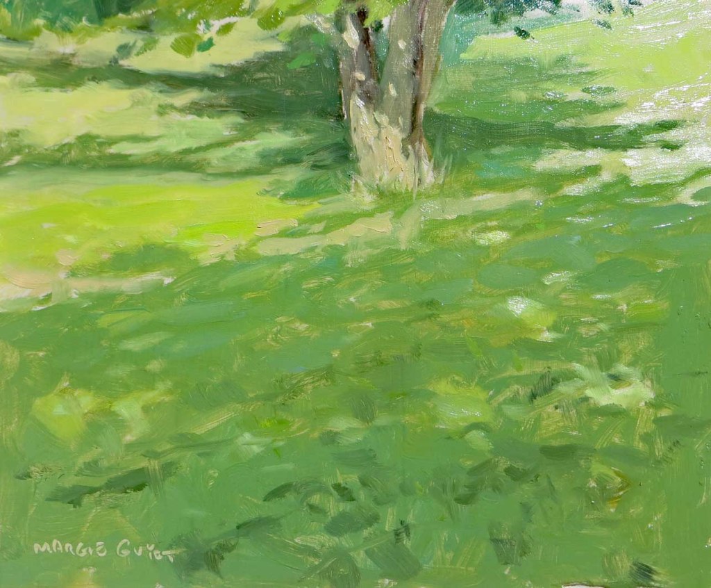 Close to 90 degrees. Too hot for me! I found a nice, cool spot under a giant maple tree this morning. Today was our painting group’s annual “paint and potluck” gathering, just south of Charlevoix. After sheltering in place for the past year and a half, it was really wonderful to reconnect with old friends again. I’d forgotten what a great group of people they are. A fun time was had by all — and the food was great!