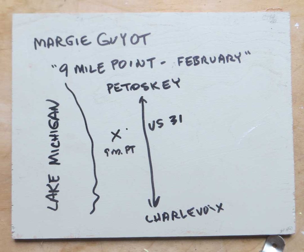 And now – why use pale colors on the backside? After finishing a plein air landscape, I like to draw a simple map on the backside of the location. Gallery owners love this. They’ve told me customers will use the map to drive out to take a look at where that spot was. And maybe some day, 100 years from now, people might like to see how things have changed.