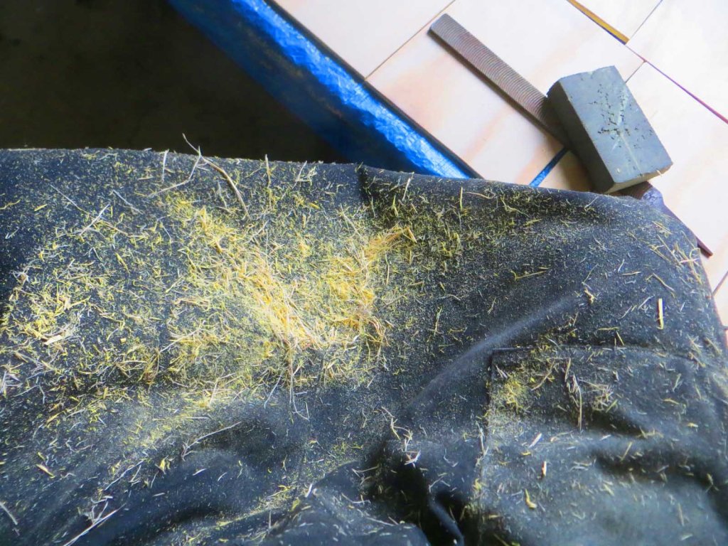 After the paint has dried, smooth out rough edges with a metal file. Just use a few swipes to get the worst of it off. Don’t spend a lot of time on this. Then go over the edges with a few swipes of medium-grit sandpaper. This is just to avoid splinters later on.