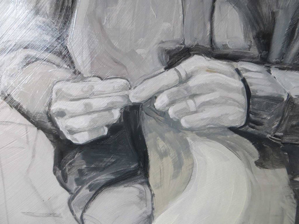 OK, now the hands. Maybe that one finger needs to be shortened. Tomorrow I’ll walk into the studio, see it and know instantly what’s wrong!