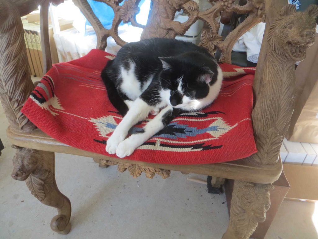 As if it wasn’t hard enough to paint this setup, Mr. Wonderful insists upon snoozing right in the middle of it! I wish he’d find another spot to take his naps, like Picasso here, over in his bear chair.