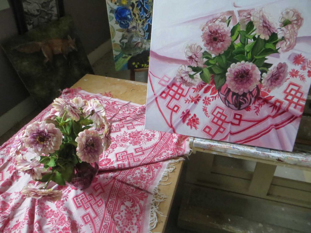 The good things are: 1) I didn’t have to go anywhere today and 2) it was back to the usual cloudy, dismal sky. Bad for some things, but great if you’re trying to paint a still life! Here’s how it looked at the end of the day today.