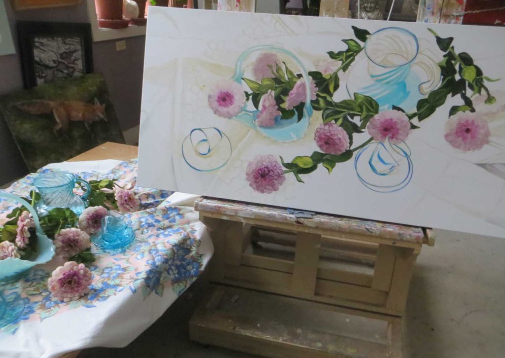 A perfect day to paint zinnia leaves in my nice, warm studio as the Pacific Northwest struggles under a monster snow storm. May all be safe and well on this Christmas Eve.