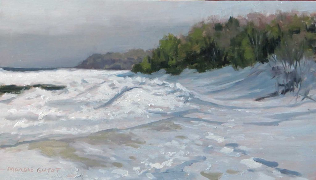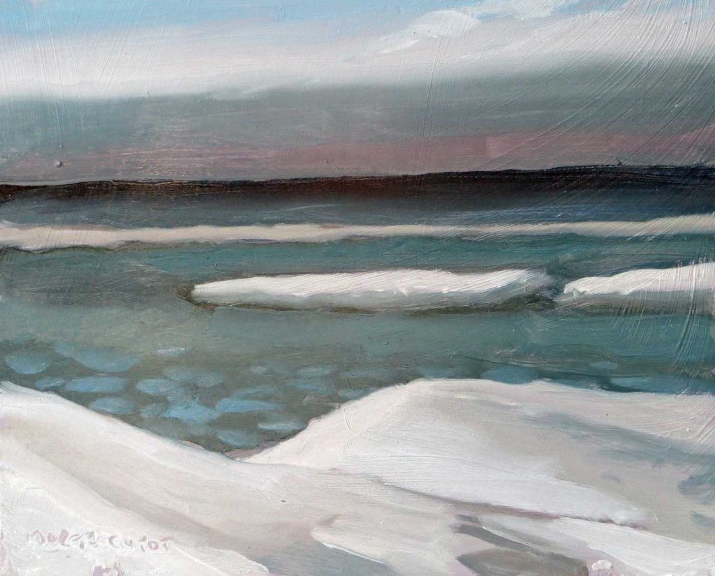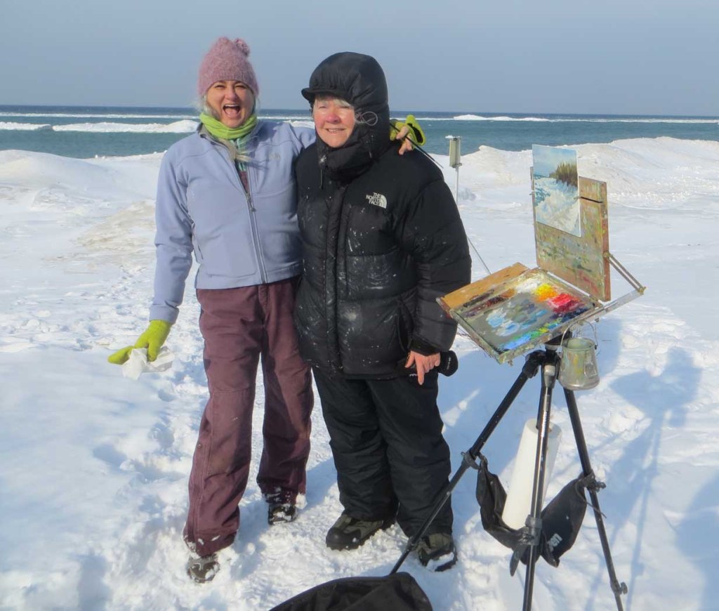 Finally! A sunny day, about 40 degrees! While some of the eastern US was being hammered, my friend Lori and I decided to get out and paint. We knew it’d be extra windy (= cold!) down at the beach, so we bundled up with lots of layers: longjohns, wool socks and sweaters, wind-breakers, heavy down coats and boots. In fact, we were almost too hot! Our legs were so “swaddled”, it was difficult to lift our feet up to get into my truck!