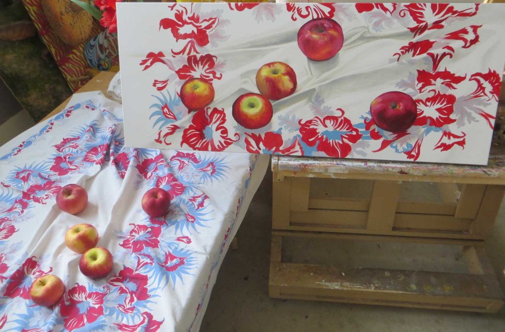 Reports on the news were all about snowstorms, power outtages, etc. Here in Eastport, the sun came out, turning my still life setup a mish-mosh of bright light and stark shadows. I was tempted to throw my gear into the truck and go plein air painting, but it’s bitterly cold. Instead, I wimped out and took a long lunch break. How’d you like to try to paint this?