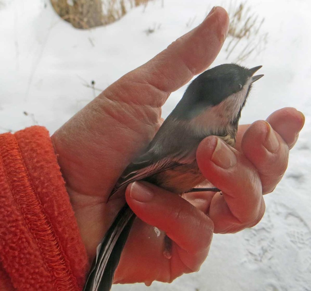 Side note: while painting, I heard a familiar thunk on the window. A bird had flown into the window. I put down my brush and ran out to retrieve a poor chickadee that was knocked out, lying in the snow. I picked him (her?) up and held in my hands for about 10 minutes, cooing words of encouragement. Eventually it revived and flew away, like the proverbial bat outta hell.