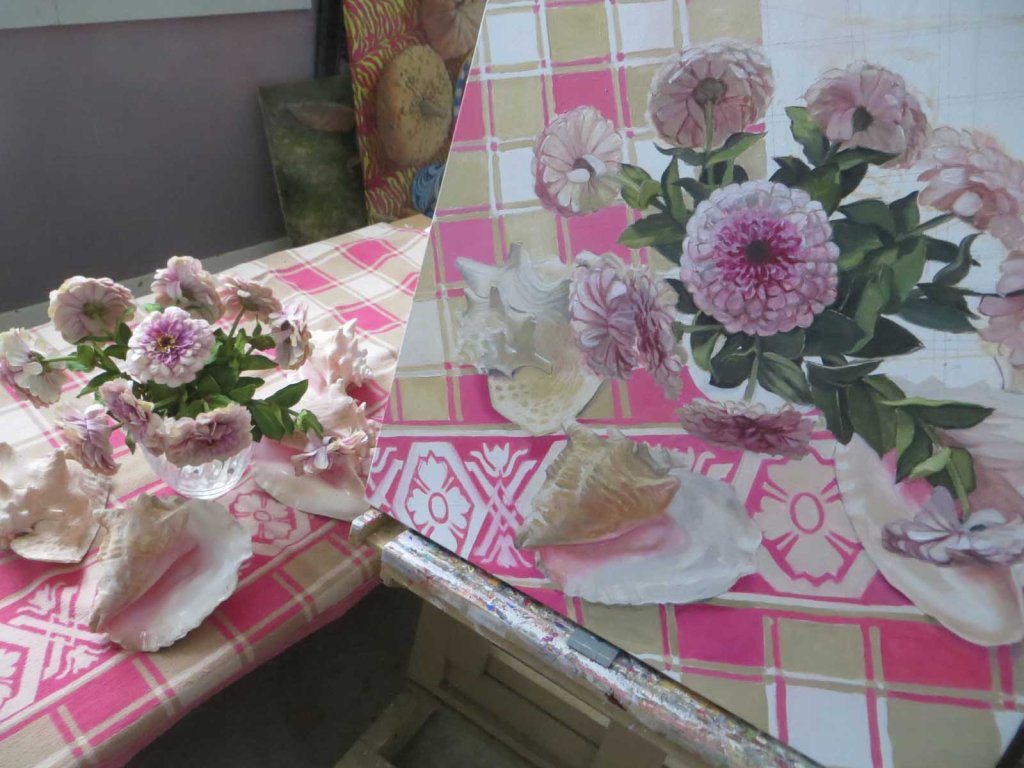 One of my friends is a weaver. Another designs sweaters. I’m always astounded at how they can work out such complex patterns. I struggle to make sense of abstract designs. This is just a child’s blanket from a garage sale and yet I struggle. Not only the pattern, but getting it to recede in space, to “look flat”, mix the right colors — that’s a challenge. Today was kind of tough. Hoping tomorrow will be better.