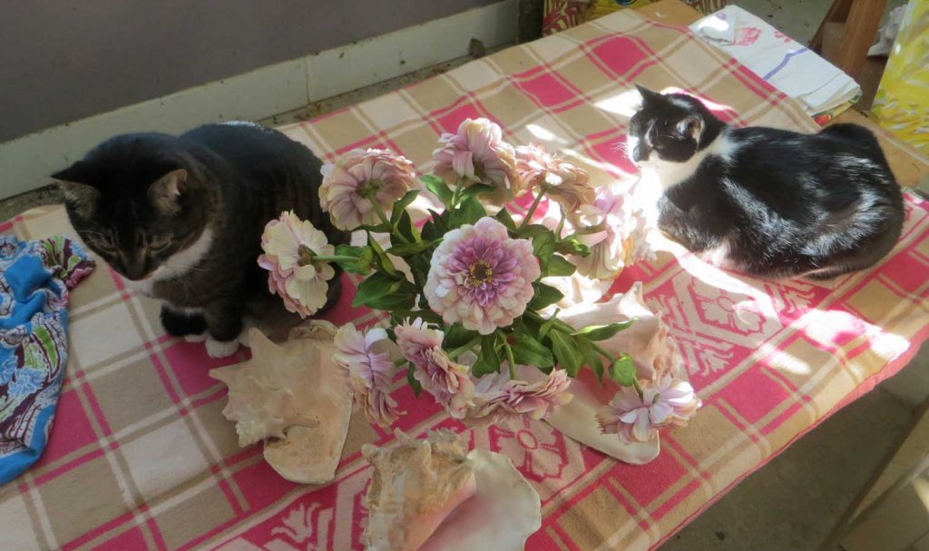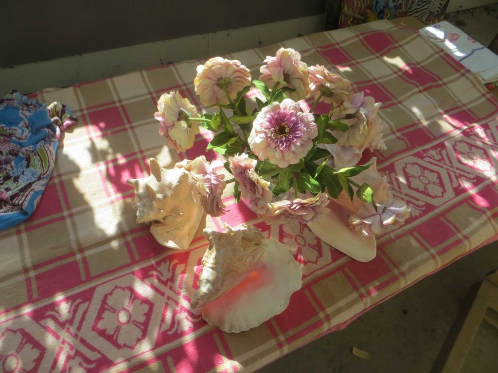 I’d meant to try to finish the still life today but ran into difficulties. The cats wanted to lay all over the setup: