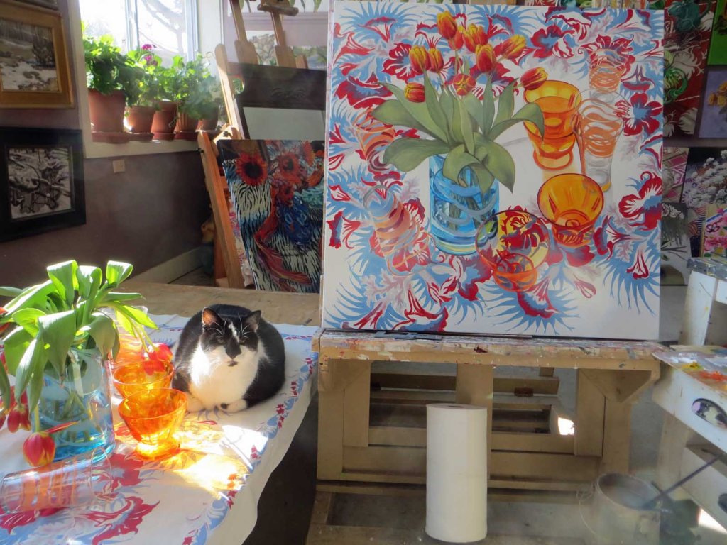 That’s Picasso, my #1 critic and buddy. He sat like this most of the afternoon while I worked. Almost done!