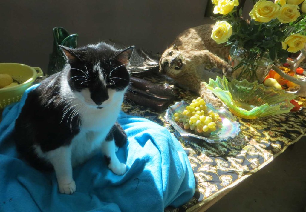 The first thing I thought of when I woke up was the stuffed bobcat I’d gotten from FB Marketplace. Aha! That would go perfectly with yellow roses!