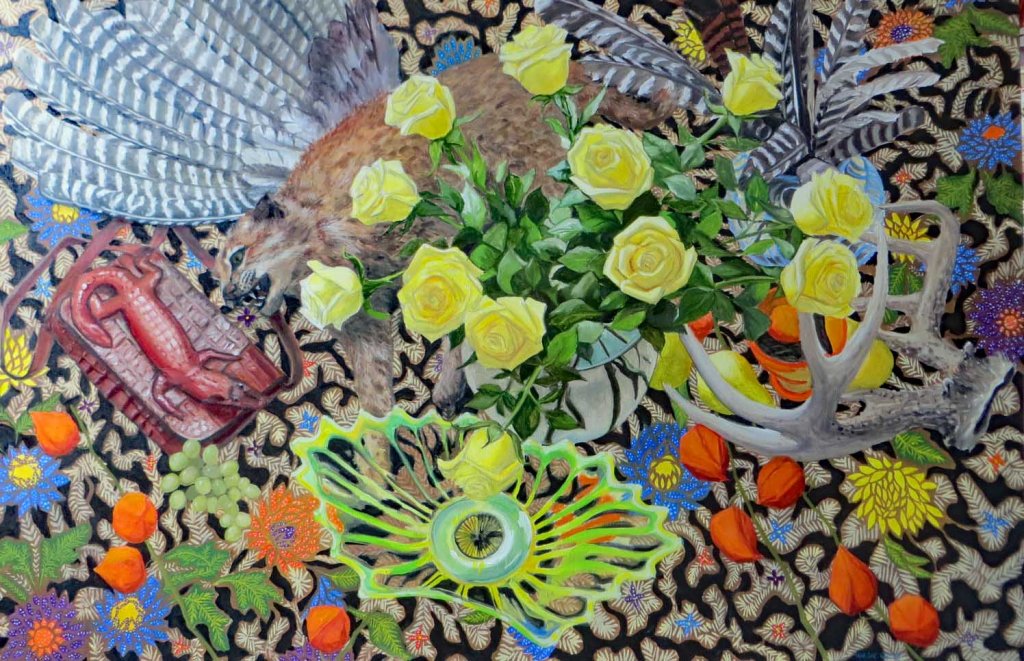 I found this bobcat on FB Marketplace last summer. A few days ago I woke up with an inspiration from my “early morning muse”: put the bobcat in that still life! He was fun to paint. As was the alligator purse (from eBay). Hmmmm….. what next?