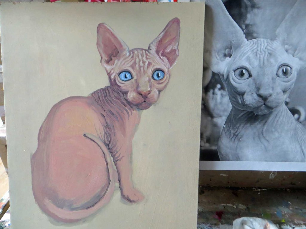 It’s cold and rainy. Rotten day for gardening, but ideal for studio-time. Here’s one I’m starting for a friend. Kitty looks adorable. I’ll probably never get one of these. My cats have always freebies. Picked up out of the road. Abandoned at the Post Office. All 3 are snoozing on my bed. A good thing, Otherwise they’d be hanging out in the studio, demanding treats.
