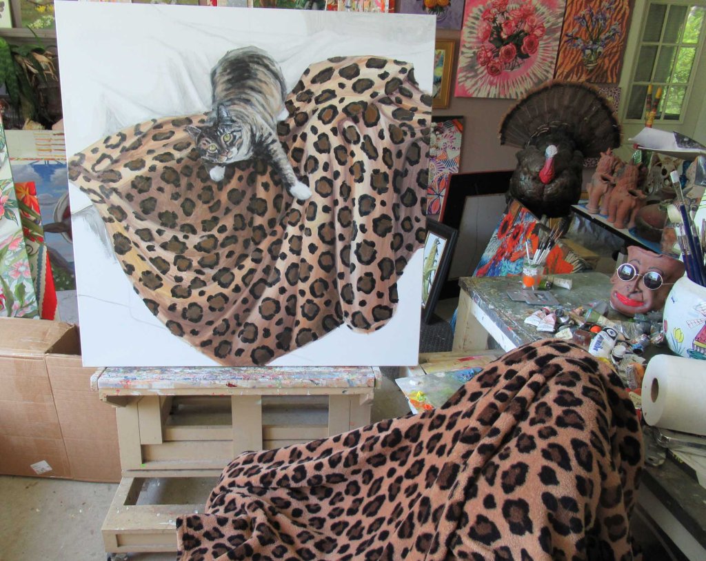 Reminder to self: never paint leopard spots again! At least never paint leopard spots on a gorgeous summer day! It was beautiful outside. Flowers blooming, birdies singing. And there I was, slinging brown paint around. Maybe tomorrow will be more fun?