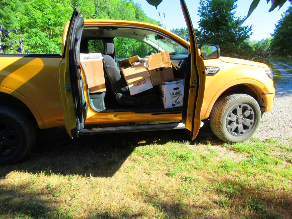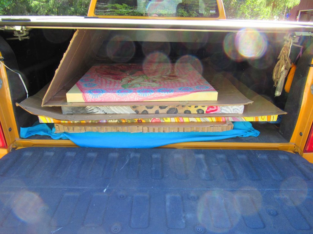 But it wasn’t all fun and games today. I had to pack up my little truck with paintings to take to Tamarack Gallery (over in Omena). I hate leaving things go until morning, so I packed up this afternoon. I can only say one thing: UGH!!!!!!!