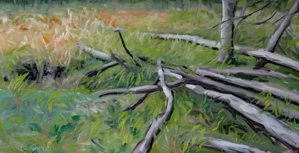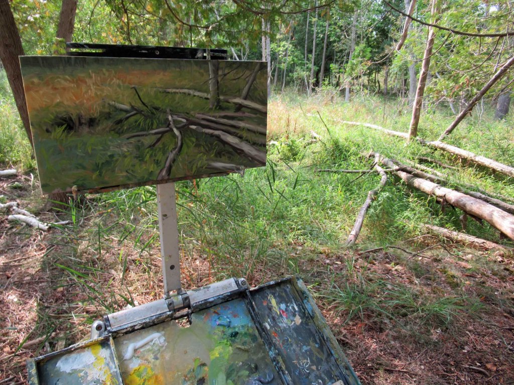 I just had to step away from my still life for just a day. I was about to go “Yoko” on it (https://www.youtube.com/watch?v=HdZ9weP5i68&t=55s). I loaded up my wagon with gear and rolled it down the new swamp walkway and painted this view. Just for the hell of it.