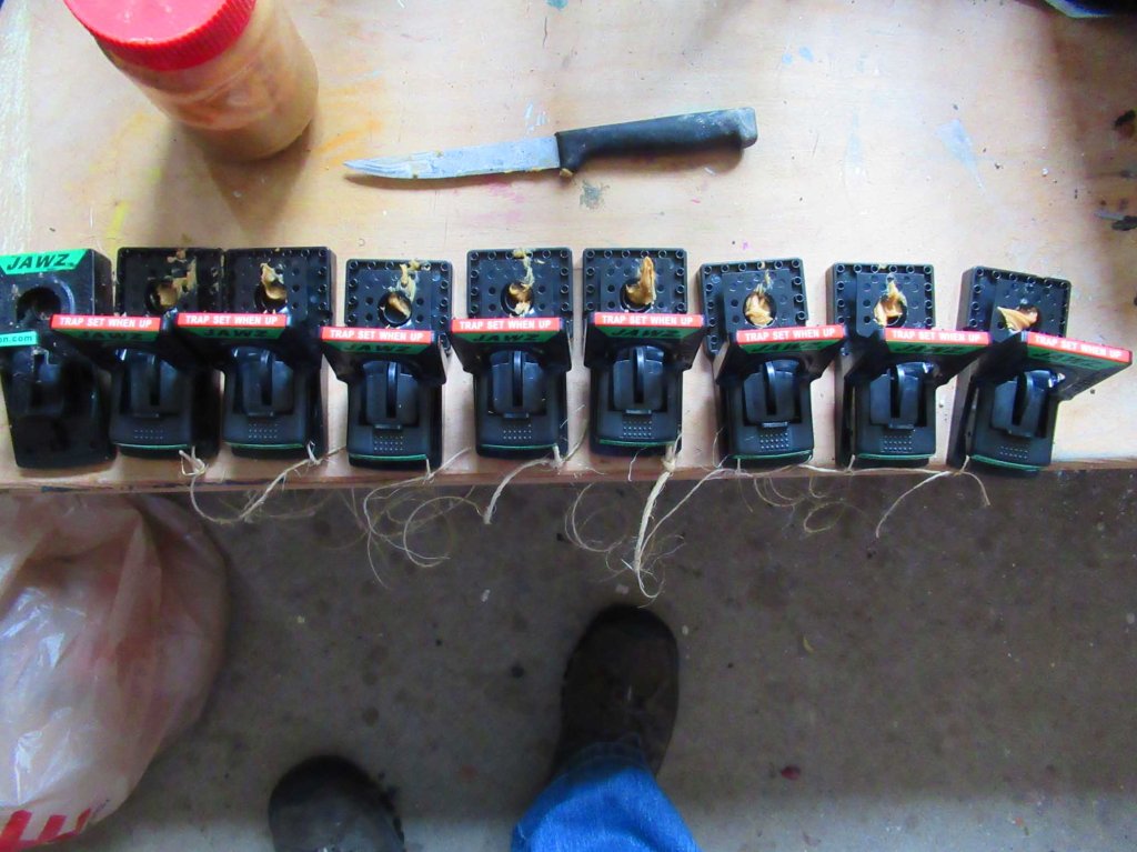 Oh, and get a load of my array of mousetraps. Ravenous beasts. Trying to keep them from ruining my canvases. Mouse-running could almost be a full-time job. I have to tie them with a string to something, or sometimes they tug the trap “far, far away”….