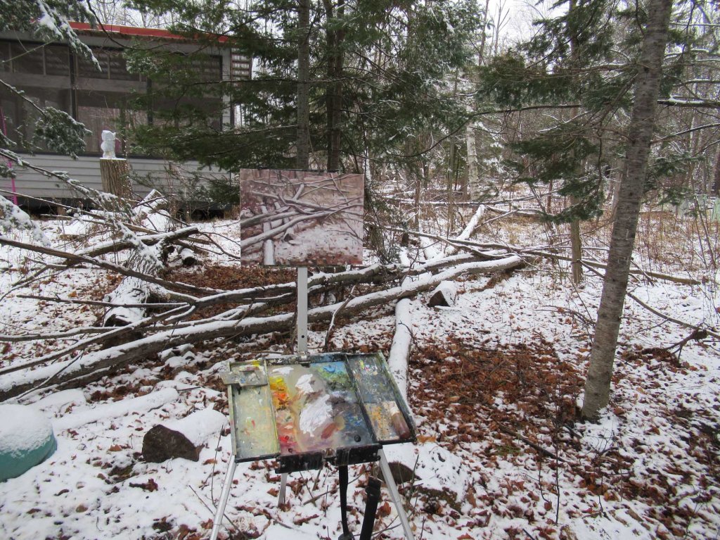 It was a lucky day: no snow fell off a tree onto my palette — or down the back of my neck. It’s happened……!