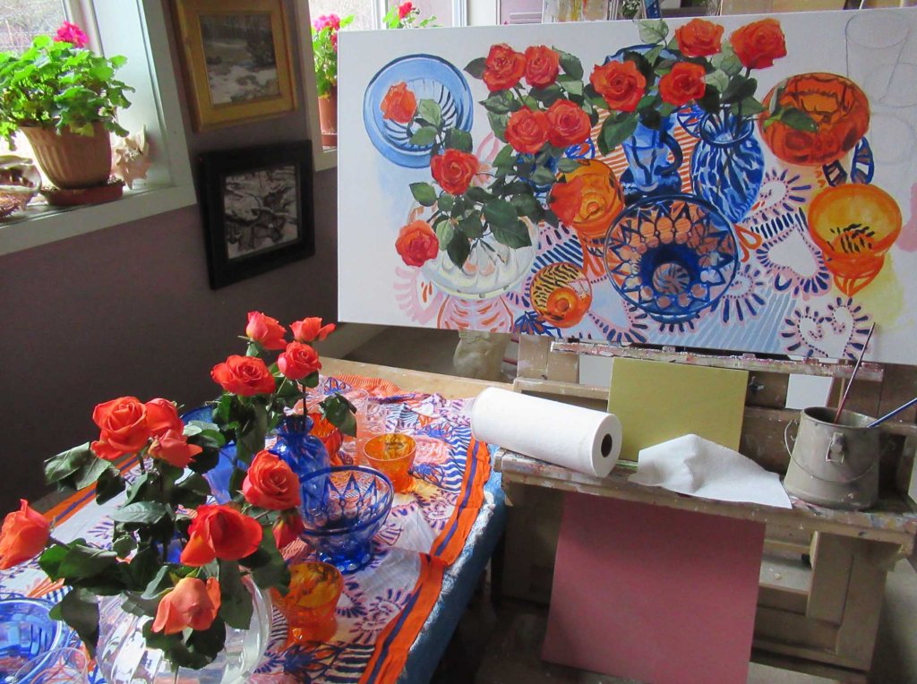 Below is a closeup of a detail I’m working on. It’s challenging, but a person can’t just paint barns all the time….