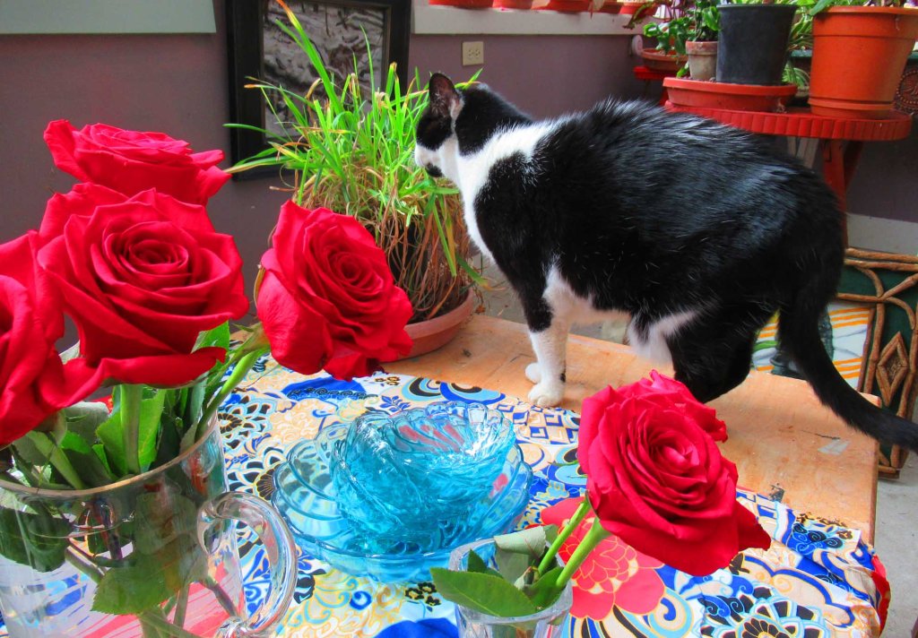 Picasso hung out with me all day. Here he is, munching on some grass I’d potted up for him last fall. Just try to get a cat to pose!
