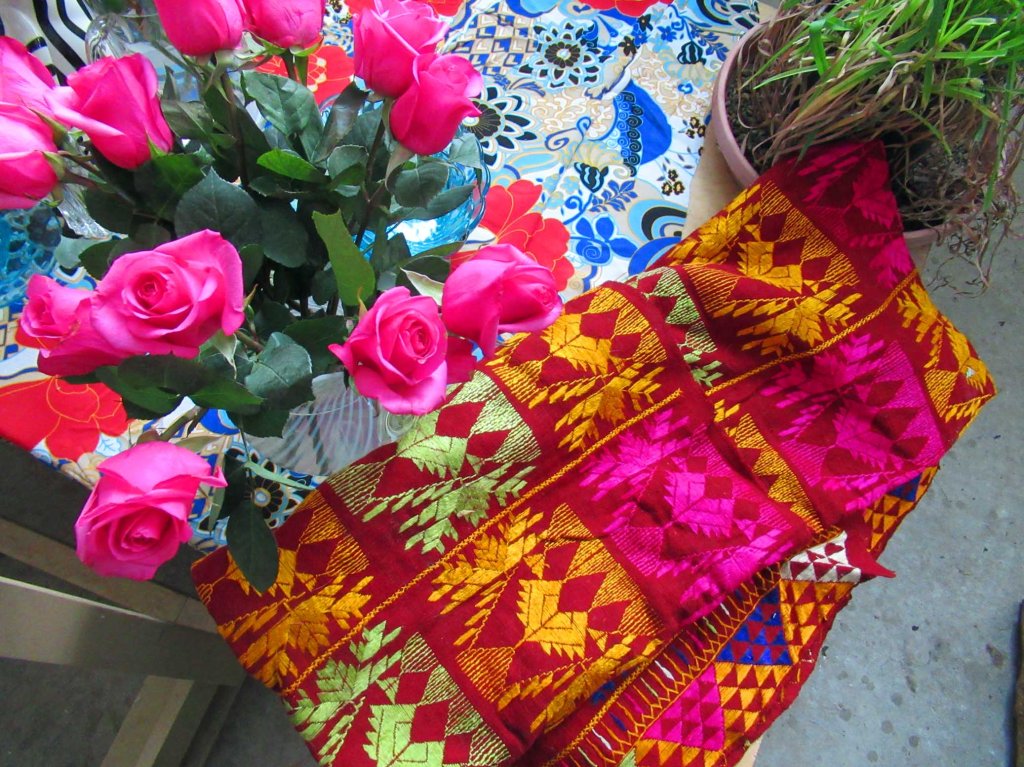 Love how the roses and the hot pink in the cloth complement each other so well in the makings of the new piece.
