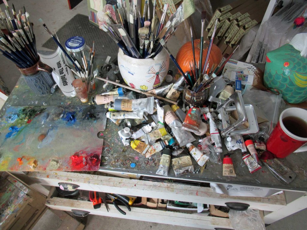 If you’re curious, this is how the painting looked in the first half hour. No, I don’t project and trace. I do find a view-finder helpful when composing. Early in the “drawing in” stage, I pick an object (usually a dish) as my “unit of measure” and compare everything to that.