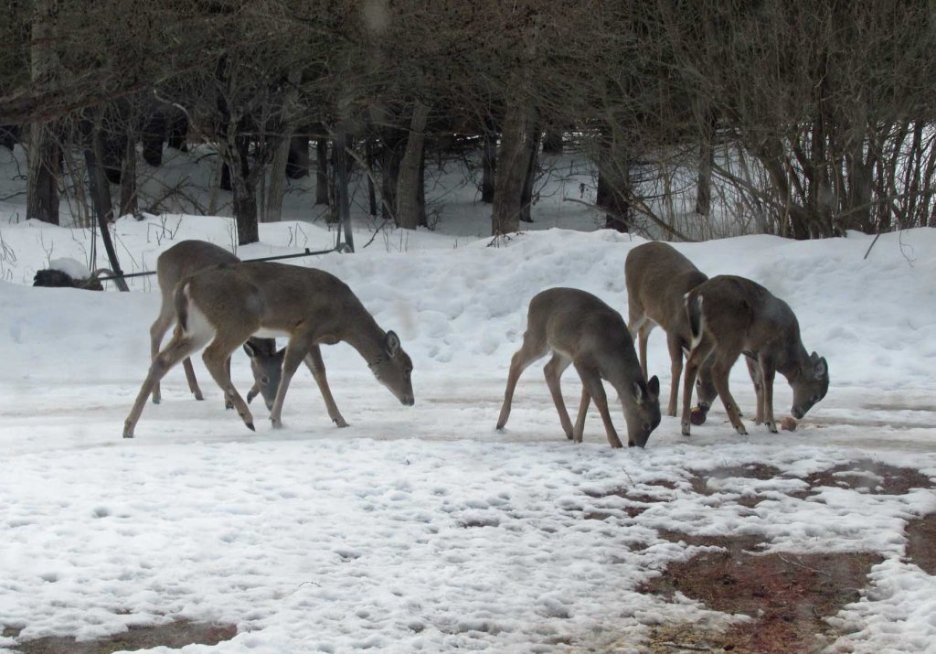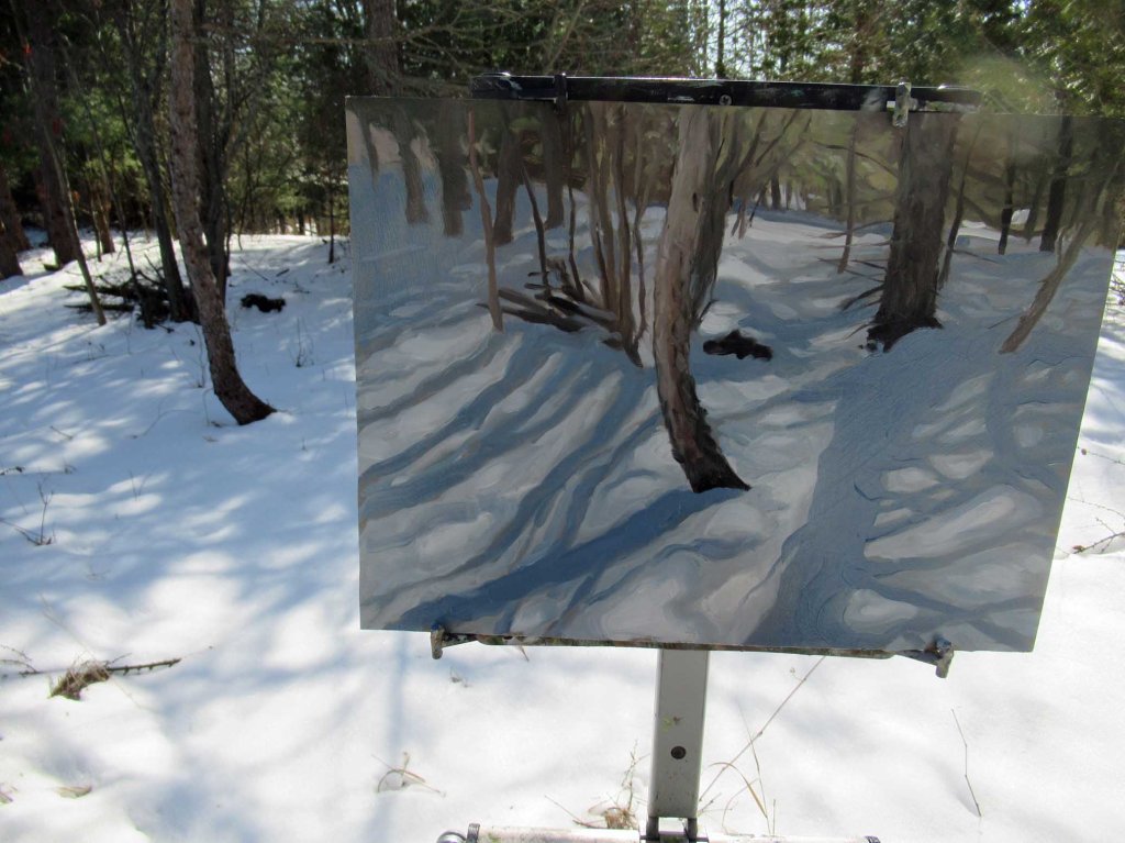 I painted fast as I could, knowing the shadows would change quicker than you could ever imagine. While I painted, the deer were chowing down in my driveway….