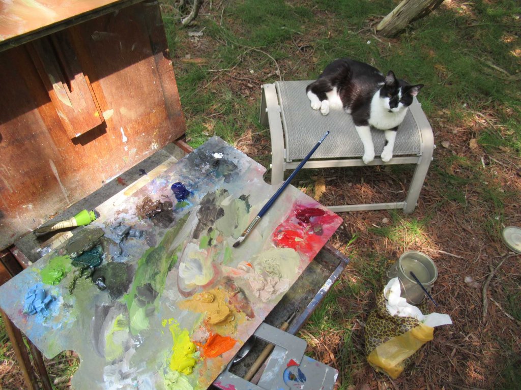 It was a great day to stay home and paint back in the swamp! Last week was Hell Week. Way too much going on, too much driving. Too much socializing! So I was happy to stay here and hang out with my cats. They keep an eye on my when I paint, knowing I’ll pass out their favorite treats. Here’s Bernie Sanders, looking quite regal: