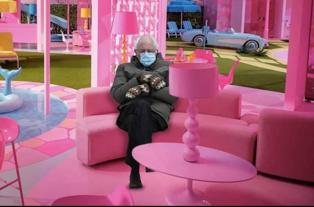There was a pretty good one on Facebook this morning — Bernie Sanders in his most memorable pose, sitting on a pink couch in the Barbie movie set.